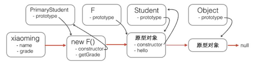 // 把PrimaryStudent的原型指向一个新的F对象,F对象的原型正好指向Student.prototype: