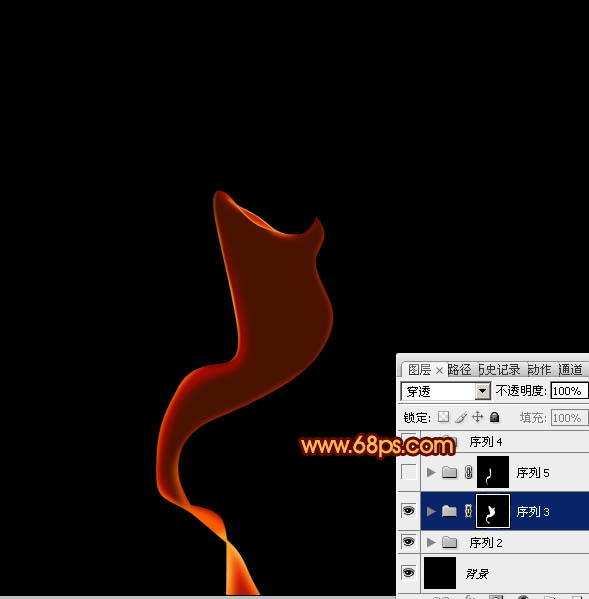 2、新建一个组,在组里新建一个图层,用钢笔勾出底部烟雾的路径,转为选区后填充橙红色:#E82B00,如下图。