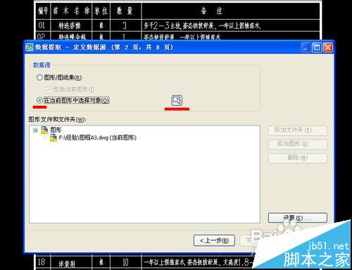 6、定义数据源,选择在当前图形中选择对象,全选目标,点下一步