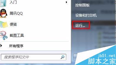 单击开始菜单,点击“运行”,如图: