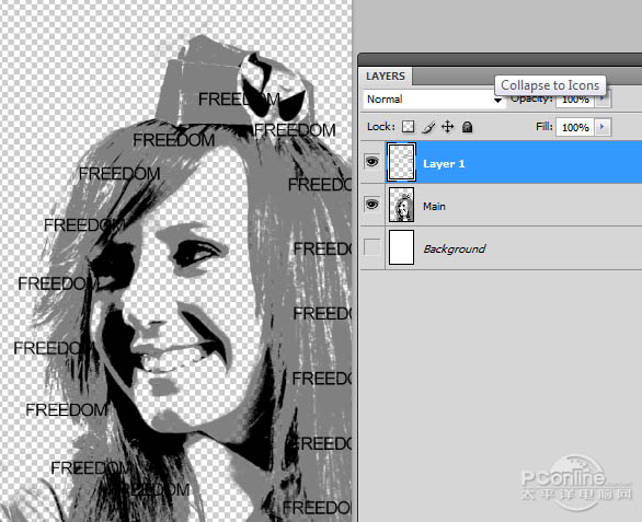 26、点击文字笔刷图层的缩略图,你就可以看到一个文字印刷效果的肖像。