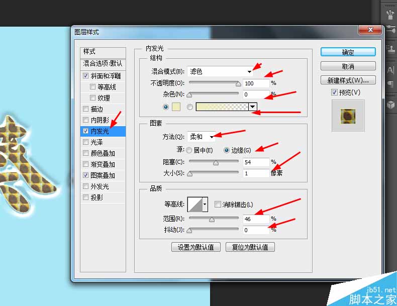 5、接下来再调整一下内发光和颜色叠加,如图所示