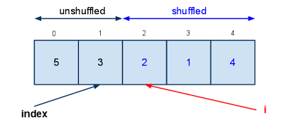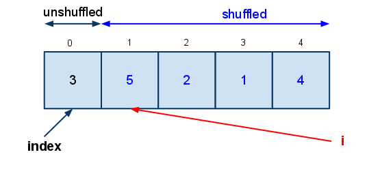 在上面的算法里,我们每一次循环从前 len - i 个元素里随机一个位置,将这个元素和第 len - i 个元素进行交换,迭代直到 i = len - 1 为止。