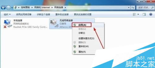 5:这时候我们可以在无线网络连接上单击鼠标右键然后选择启用