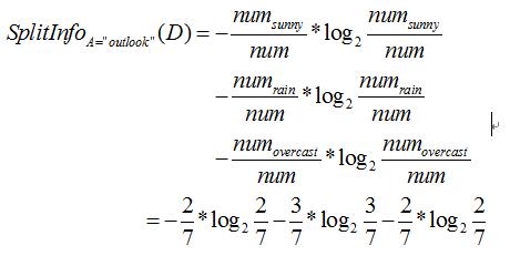 infoGain = (baseEntropy - newEntropy) / splitInfo; #求出第i列属性的信息增益率