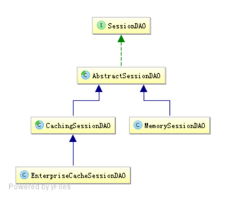AbstractSessionDAO提供了SessionDAO的基础实现,如生成会话ID等;CachingSessionDAO提供了对开发者透明的会话缓存的功能,只需要设置相应的CacheManager即可;MemorySessionDAO直接在内存中进行会话维护;而EnterpriseCacheSessionDAO提供了缓存功能的会话维护,默认情况下使用MapCache实现,内部使用ConcurrentHashMap保存缓存的会话。