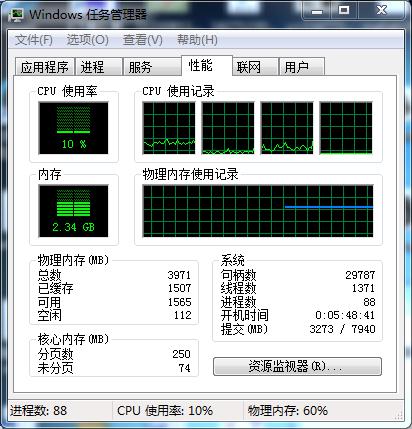 首先就是像小编这样喜欢没事关东西且无太多需求的,每天早上来到公司以后,打开电脑,习惯性的登陆QQ等几个社交软件,这时候电脑内存为1.77G。打开5个网页和一个Excel表之后,显示内存占用2.45GB。这时候几乎就是小编日常工作的一个正常状态,即使网页开多了,也会关掉几个没用的,以免出现密集恐惧症!到了中午也顶多是再打开个《英雄联盟》,这时候内存会达到3.8GB左右,即使这样,也不会觉得太卡,但这也快达到了满负荷的状态。