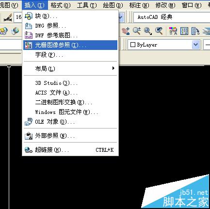 1、首先把图片插入已经打开的或新建的CAD文档中,在cad菜单中选择插入---光栅图象参照,然后选择图片文件