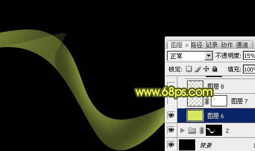 3、在组里新建一个图层,把前景颜色设置为黄绿色:#D6E85F,然后填充前景色(后面填充的颜色都一样),图层不透明度改为:30%,效果如下图。