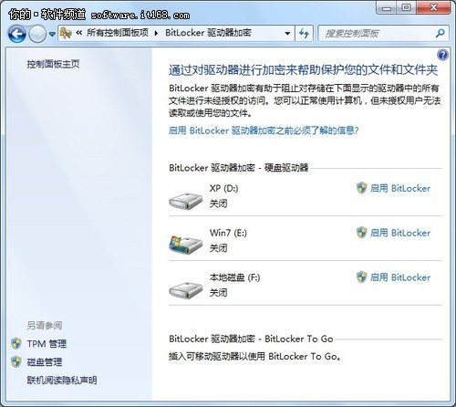 BitLocker驱动器加密原本是Windows Vista中新增的一种数据保护功能,主要用于防止由计算机设备的物理丢失导致的数据失窃或恶意泄漏,在windows7中该功能更加完备。
