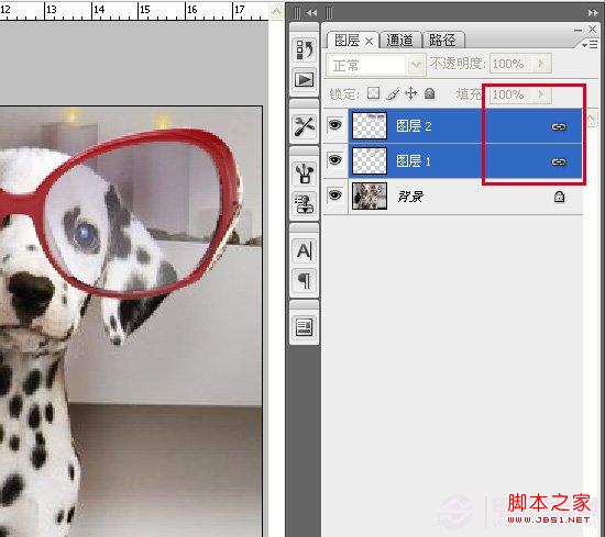 10、在复制一个墨镜放在另一个狗狗的眼睛上面--如下图