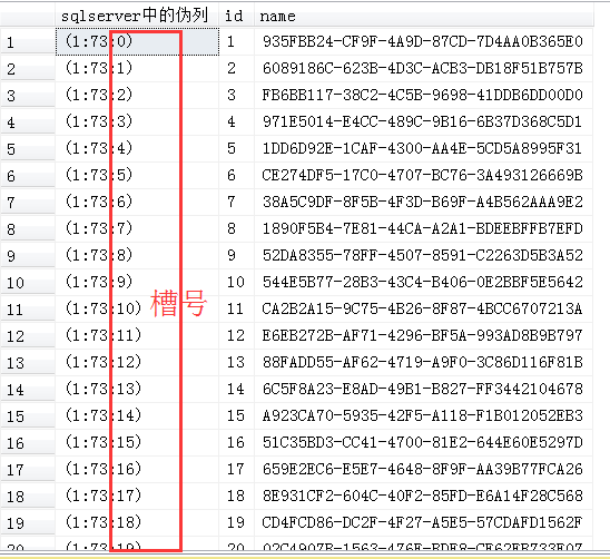 SQL Server中同样有这么一个伪列,在SQL Server中,这个伪列可以认为是数据行的物理地址,下面简单来观察一下这个RowId以及RowId的含义。