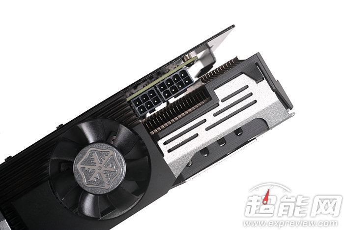 映众冰龙系列独有的A.P.C.S供电散热系统,PCB的显存和供电模块上有一块大面积的散热片覆盖,通过额外的两根6mm热管作为介质把工作时的热量传导到顶部的散热系统,50mm的小风扇会把显卡产生的部分热量发散走。当然如果玩家觉得对显卡散热满意并且想要减轻显卡重量的情况下,顶部的整个散热系统是可以拆除的。