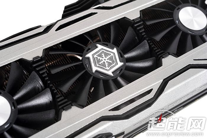 GTX 1080冰龙超级版的散热器规模由正面的三个92mm和顶部一个50mm的15叶风扇组成,中央的风扇主要负责GPU核心热量的排放,位于左右两边的风扇负责GPU供电和其他部分的热量排放,而顶部的风扇本质上是为了加强显存和供电模块的热量排放而设计的。红色的金属遮罩主要是为了保护SLI金手指,除了保护作用在外观上和散热器整体也显得浑然一体,玩家需要组建双卡的时候,需要用内六角螺丝刀拆除。