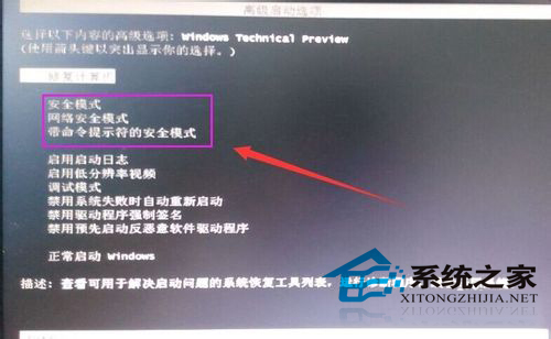 出来的菜单,再用键盘上的上下键选择你要进入的安全模式,再按一下回车键。