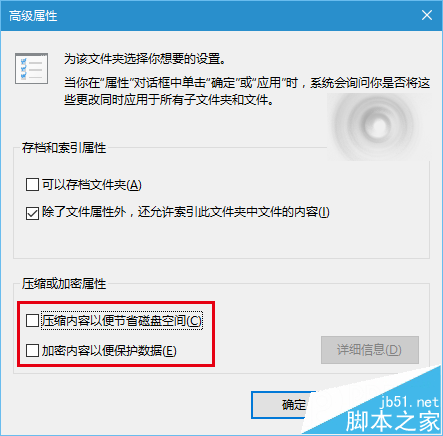 3、取消勾选下面两个压缩和加密相关的选项,点击“确定”,如下图——