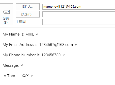 用户点击提交按钮之后,就会打开本地邮件客户端,并自动将他在输入框中输入的内容作为邮件的内容,像下面这样: