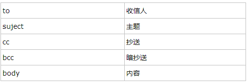 如果用form的话,在mailto链接中传递的参数和效果与使用a的相同,他的特别之处是他会把input中的name属性的值和其输入内容也传递进去:
