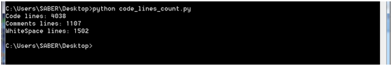 print "Code lines: %d\nComments lines: %d\nWhiteSpace lines: %d" %code_lines_count(r'D:\exercises')