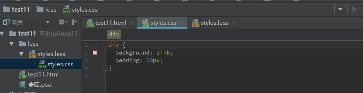 至此已成功将less文件编译成css文件。