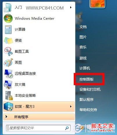 2、从电脑桌面的左下角,单击开始菜单-然后选择进入-“控制面板”,如下图所示: