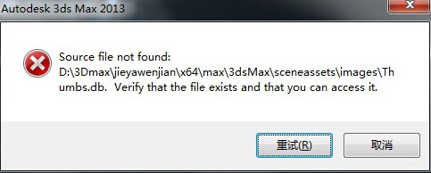 安装3DMAX 2013(2014) 出现错误提示:Source file not found:X:\Autodesk3dsMax\x64\max\3dsMax\sceneassets\images\Thumbs.db Verify that the file cxists and that you can access it.该怎么办呢?