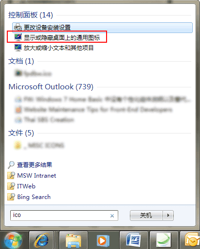 b) 在 开始搜索 中输入ICO