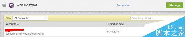 1.登录GoDaddy账户,在“WEBHOSTING”产品列表中找到Linux主机,点击绿色的“Manage”按钮进入cPanel控制面板。