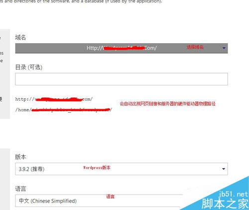 a.选择域名、WordPress程序的版本和语言(推荐中文)。