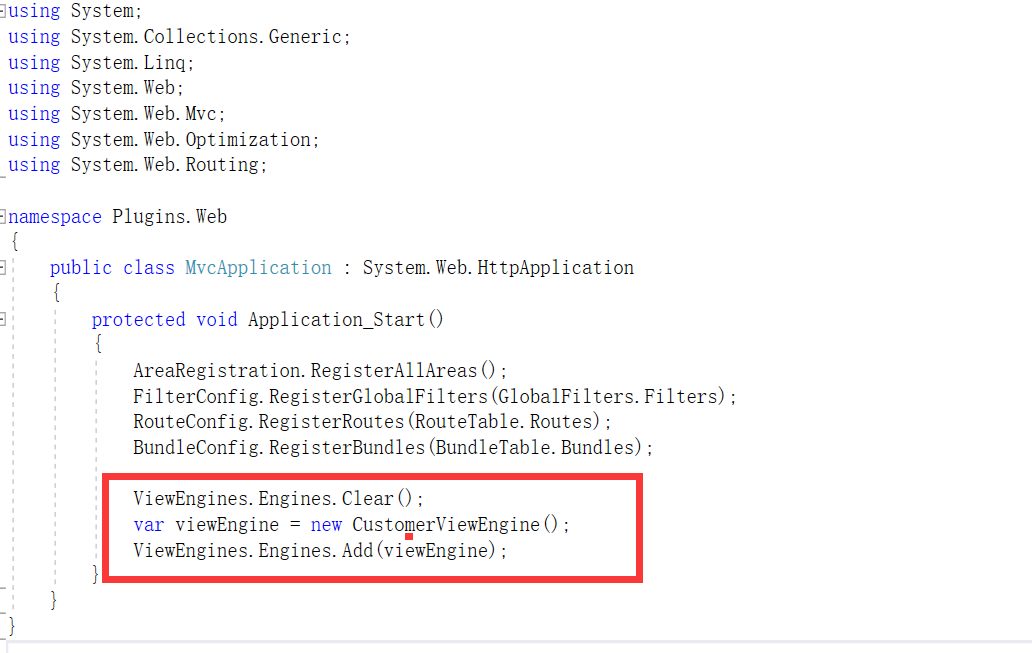 然后在主站点的Global.asax中将Razor引擎指定为我们重写过的