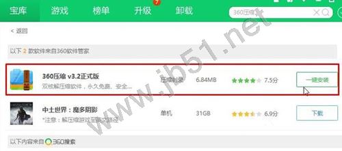 在搜索结果中我们可以看到“360压缩V3.X正式版”,在它后面点击“一键安装”;