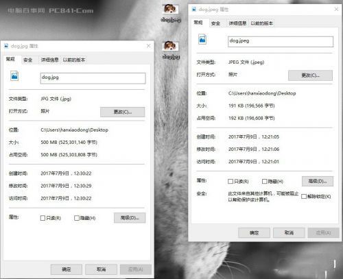 我们尝试打开生产的文件,神奇的事情发生了,它依然是刚刚的那个图片,然而比对文件属性大家很容易窥见端倪。