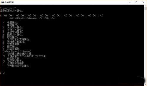 使用win+r打开运行,输入cmd打开命令提示符窗口,输入attrib/?,可以获得它的命令参数和用法,如下图所示。