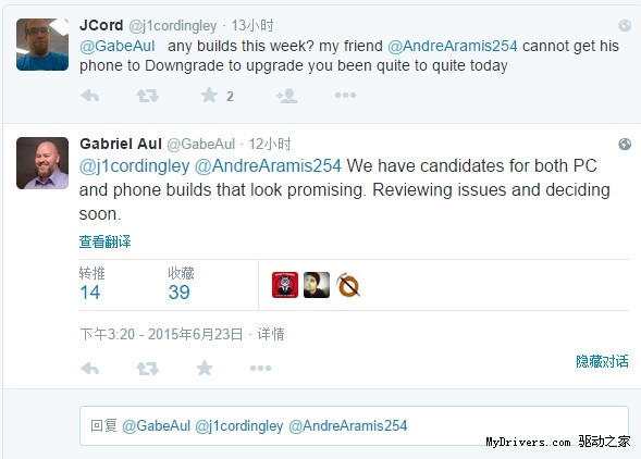 Windows Insider项目负责人Gabriel Aul今天在Twitter上表示,新的Windows 10预览版已经准备好了(包括PC版以及手机版),正在测试中,不久之后就会决定是否推送。