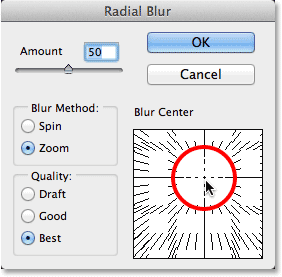 滤镜→模糊→径向模糊,设置如下红色圆圈内数据: