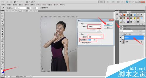 3、回到图层,选择空白图层,将前景色设为白色,并在图像选区单击右键,填充为前景色,也就是白色。