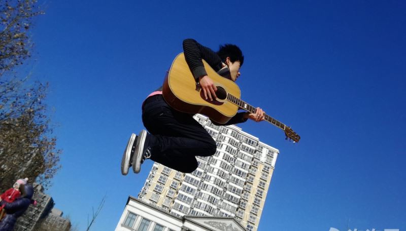 技巧二:如果只为扑捉腾龙后的一张照片,不建议拍照者手机跟随被拍者一起移动。因为移动过程中手机势必会有不同程度的抖动现象,快门按下的一瞬间,造成照片模糊,影响整体效果。建议拍照者预估被拍者跳跃后的最佳位置,对准该位置连续拍摄,最后找出最佳样张。