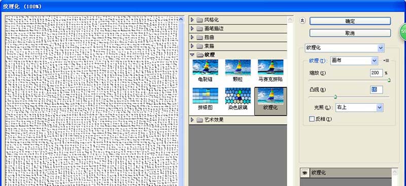1、新建一个10*15厘米的空白白色背景,分辨率设置为150,点击确定。设置前景色为灰色,背景色为白色,执行滤镜,纹理,纹理化,设置纹理为画布,缩放为200%,凸现为16,点击确定。