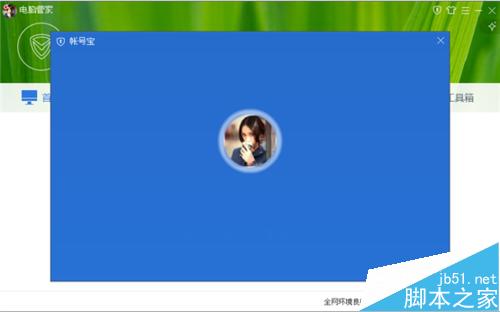 2、从右上角查找账号宝按钮,点击账号报按钮,出现弹窗