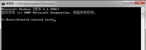 开始——>运行——>输入cmd回车——>输入 netsh winsock reset 命令(重置winsock文件)——>重启系统。
