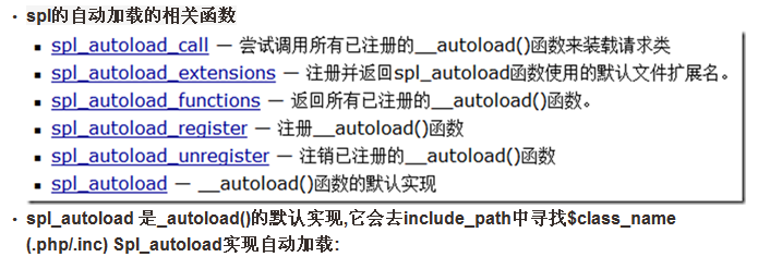 spl的autoload系列函数使用一个autoload调用堆栈,你可以使用spl_autoload_register注册多个自定义的autoload函数,应用场景广泛