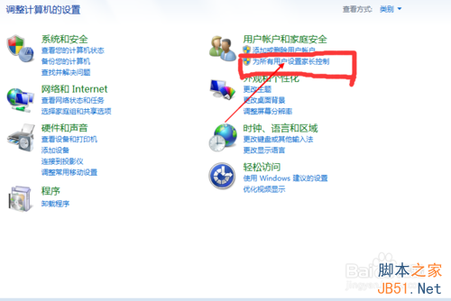 3、找到“为所有用户设置家长控制”窗口并打击