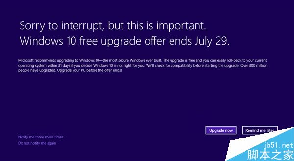 安装后,它会弹出一个提醒,很客气地说:“很抱歉打扰了,但是这很重要。Windows 10免费升级将在7月29日结束。”