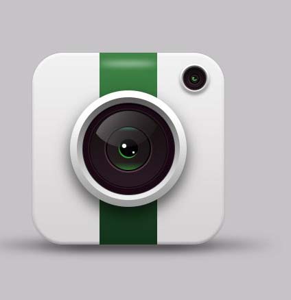老规矩,先来分析一下。这里我们主要分为四个部分:底座、绿条、大镜头、小镜头,其他问题都不大,主要是镜头部分、需要用到多个图层及图层样式,来表现图标的立体感,骚年分析完已经成功一半了,离成功还会远么,噢耶!!!