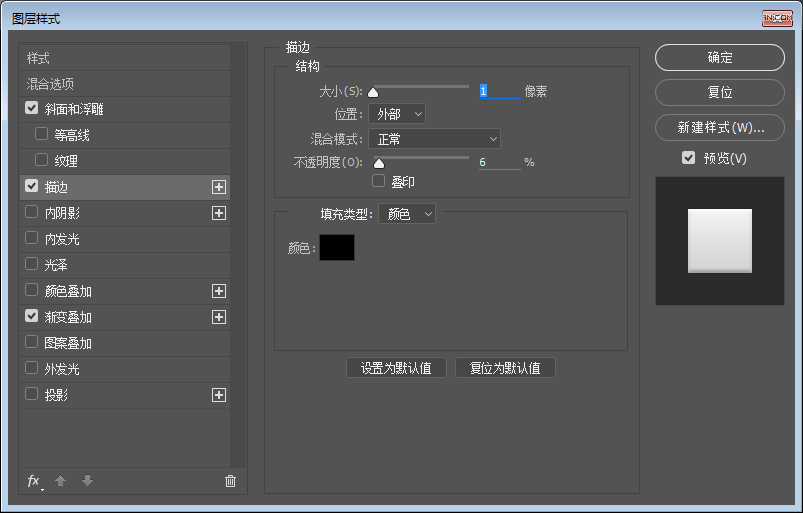 步骤二:使用圆角矩形、绘制一个280*280,圆角半径为50px的图层,并为它添加图层样式。