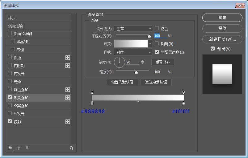 步骤三:接下来我们新建85*280的矩形,命名为绿条、添加图层样式。
