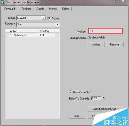 3、给炫云按钮设置快捷键。选中左边的“SccSubmitJob”,同时将输入焦点移动到右边的HotKey上边,然后按你要设置的快捷键,例如F11,如下图所示。