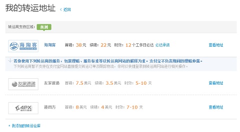 转运商-目前只可以选择海淘客,不过相信以后会支持更多的转运公司;