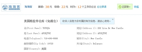 司为海淘客设置的专门仓库地址,目的是用来收取综合购物商城美亚、生活百货6PM或到ebates.com上海外网上商城