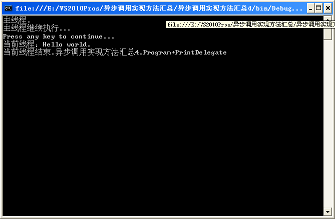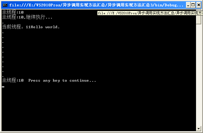 Console.WriteLine("主线程:" + Thread.CurrentThread.ManagedThreadId + " Press any key to continue...");